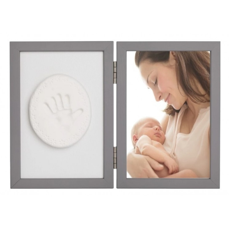 Baby Odtlačok - Dvojitý rámček s modelínou pre odtlačok ručičky alebo nožičky, sivý