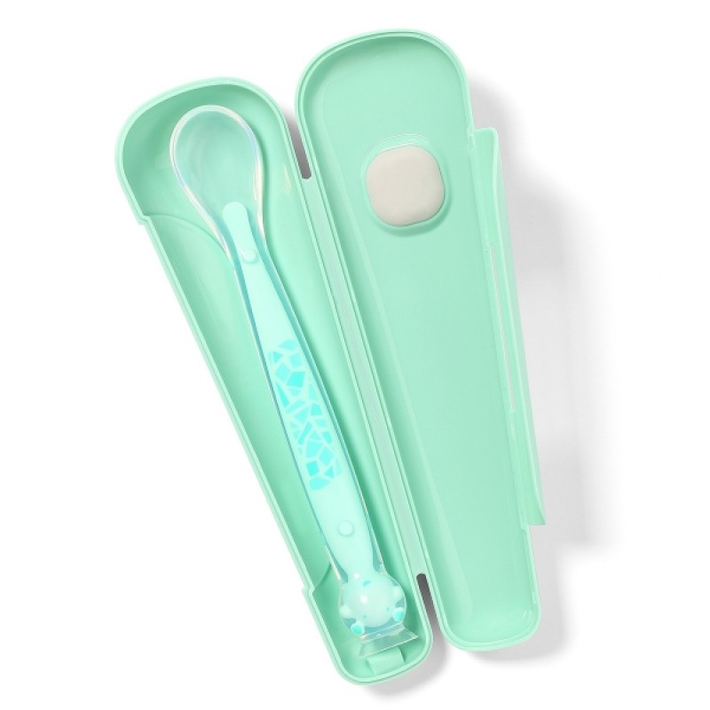 Silikónová lyžička úzka s prísavkou v puzdre - mätová