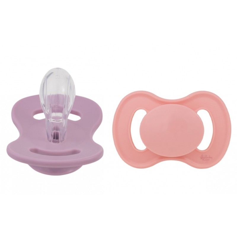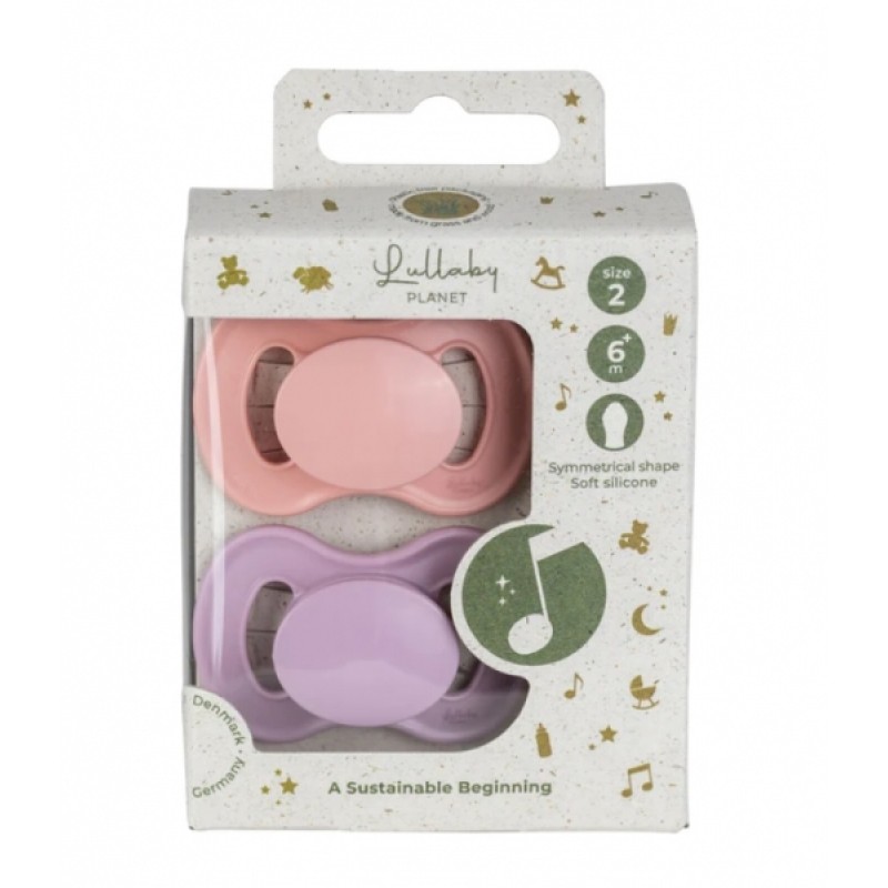 Cumlík, silikón, symetrický, 2ks, Lullaby Planet, 6m+, ružová/liala