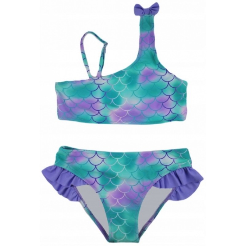 Dievčenské dvojdielne plavky s volánikom - Noviti, Mašlička, fialovo/zelené, veľ. 152/158
