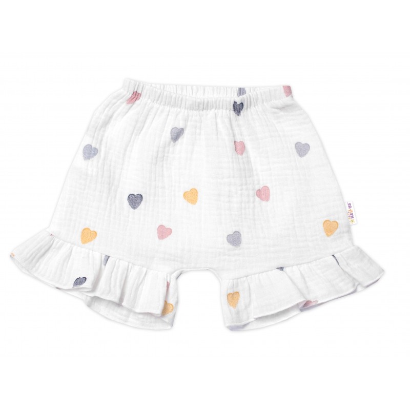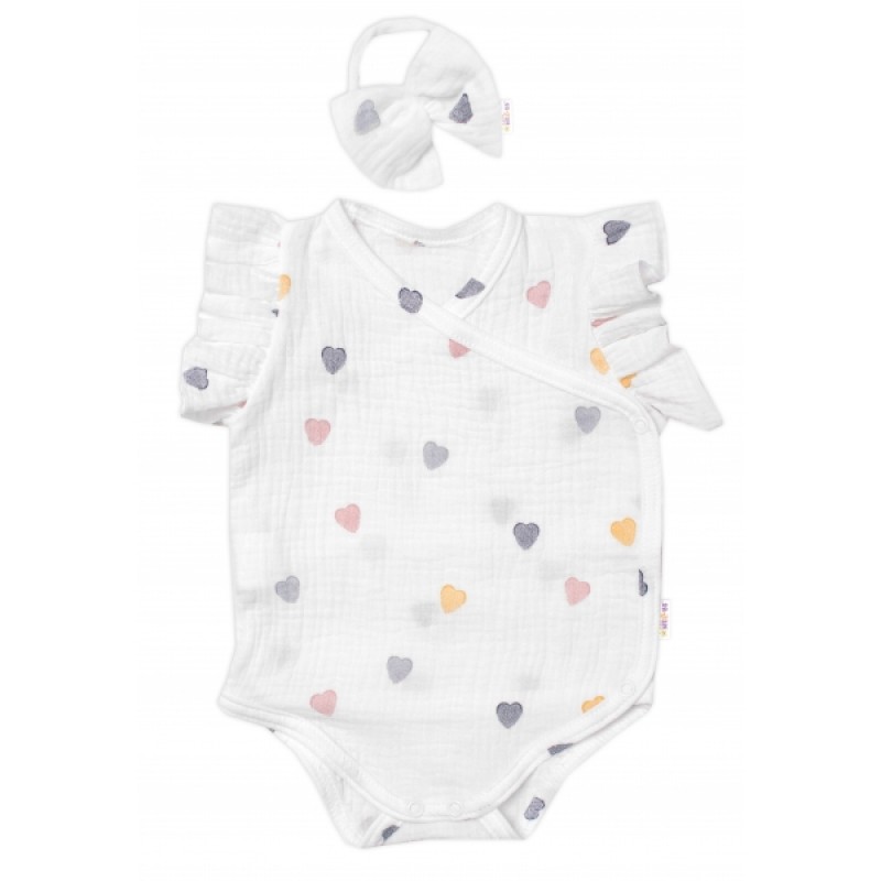 Zavinovacie body, kraťasky + čelenka, mušelín, Srdiečko, Baby Nellys, smotanové, veľ. 62